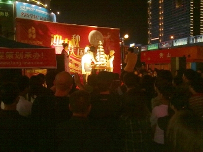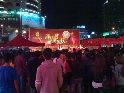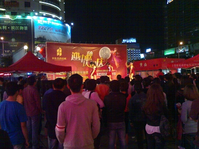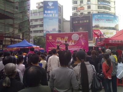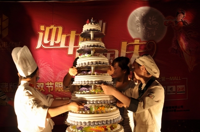 《浪漫》雜志承辦的“香港名城·迎中秋、慶國慶”大型路演(10天)在上饒市步行街舉行,現(xiàn)場設(shè)置了許愿墻、并制作了月餅、8層的大蛋糕,祝福祖國61歲生日,并進行了現(xiàn)場派發(fā),更有精彩節(jié)目現(xiàn)場演繹。
